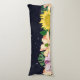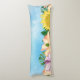 Un coussin de corps de qualité musclé a accroché avec une bordure florale d'aquarelle magnifique contre un ciel étoilé sur un côté et un ciel bleu glorieux avec des nuages blancs moelleux sur le dos. Par Leslie Sigal Javorek, artiste numérique.