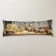 Une scène de rondin de Noël sur un coussin fabuleux pour les vacances. Ce long coussin de corps comporte un rondin de Noël brûlant dehors dans une forêt neigeuse. Perfectionnez pour détendre pendant la saison de solstice.