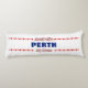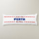 Ce dessin coussin du corps porte le nom de lieu "PERTH", avec une rangée de formes cardiaques de couleur rose et rouge au-dessus, et une rangée de coeurs de couleur rose et rouge au-dessous. La rangée inférieure de coeurs roses et rouges affiche le message "Ma maison". La première rangée de coeurs porte le nom de pays "Australie". Cela pourrait être un grand cadeau pour quelqu'un qui vient de Perth en Australie, et qui est fier de l'appeler chez lui. [~Z0000022]