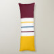Ce coussin moderne dispose d'un motif automnal coloré aux rayures mauve, jaune ambre et blanche.