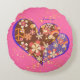 かわいいピンクの鮮やかなお花模様レトロハート♡ ラウンドクッション
