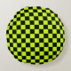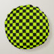 A vibrant checkerboard pattern with alternating neon yellow and black squares creates a striking geometric design, conveying a bold and energetic tone.