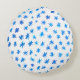 Bleu et noir, rond. Se glisse dernière le dos pour le soutenir. La qualité d'impression est excellente.