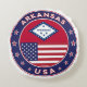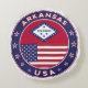 Badge de l'Arkansas avec drapeau de l'Arkansas et drapeau des Etats-Unis couleurs, forme arrondie. Emblème de l'Arkansas. Sceau de l'Arkansas. Collection USA Etats.