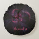 Ce coussin rond gothique présente un art fractal abstrait en gris foncé et rose. Personnalisez-le avec votre nom ou votre texte dans la police calligraphie rose correspondante.