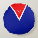 Elégante coussin ronde bleu et blanc. Trois plumes blanches à l'intérieur du triangle rouge sont pour la joie, la paix et la lumière.