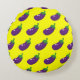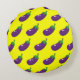 Bleu et noir, rond. Se glisse dernière le dos pour le soutenir. La qualité d'impression est excellente.