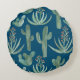 Coussins Ronds Cactus Succulents et saguaro plantes sur bleu