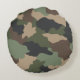 Pour la famille et les amis qui sont dans l'armée ou pour ceux qui aiment le camouflage, cet oreiller rond est le cadeau parfait. Le motif camo boisé comprend des couleurs vert kaki, brun, brun et noir. Conçu par l'artiste ©Susan Coffey.