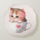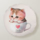 Coussins Ronds Chat blanc-rose mignonne dans une tasse de thé (2)