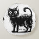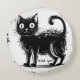 Élevez votre espace avec ce coussin rond artistique avec une illustration audacieuse et grungy de chat noir. Le chat est dessiné avec des lignes rugueuses et esquissées et entouré de plaques d'encre noire, créant une esthétique dynamique et pointue. La texture en mauvais état et le style doodle confèrent au carrelage un caractère brut et moderne.