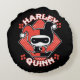 Regardez Chibi Harley Quinn alors qu'elle fait les éclaboussures devant une toile de fond en losange à pois rouges avec son nom écrit autour d'elle.