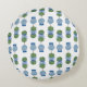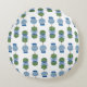 Bleu et noir, rond. Se glisse dernière le dos pour le soutenir. La qualité d'impression est excellente.