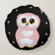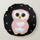 Coussins Ronds Chouette rose et étoiles en noir