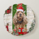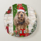 Cocker Spaniel Dog assis à l'extérieur de la maison décorée avec la couronne de Noël, le sapin de Noël est une idée cadeau de Noël parfait pour les amoureux de les chiens.