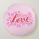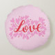 Saint Valentin Love main lettering avec les coeurs et les points ronde coussin