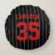 Les rayures de baseball jersey style lancer oreiller avec des couleurs entièrement personnalisables. Pour modifier la couleur arrière - plan, cliquez sur customiser et modifiez les arrière - plans avant et arrière. Pour modifier les couleurs des bandes, cliquez sur customiser, sélectionnez Couche ThinStripes1 pour le côté avant et le côté arrière et modifiez la couleur de remplissage. Parfait pour lancer des oreillers pour la salle des médias ou la chambre d'un fan de baseball.