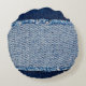 Coussins Ronds Denim blue jeans fabric frame. Bleached denim fabr
