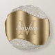Personnalisez un grand monogramme or et un nom en écriture blanche sur une vague or avec des diamants.