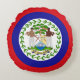 Bleu et noir, rond. Se glisse dernière le dos pour le soutenir. La qualité d'impression est excellente.