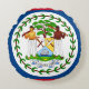 Bleu et noir, rond. Se glisse dernière le dos pour le soutenir. La qualité d'impression est excellente.