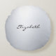 Élégante Calligraphie Argent Nom Script Oreiller à lancer rond plat moderne.
