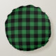 Coussin ronde personnalisable avec motif plaid vert rustique, élégant et classique. D'autres couleurs sont disponibles.