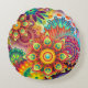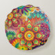 Coussin d'impression florale abstrait de Bohême. Dans les couleurs bleu, rose, orange, vert, bleu, jaune et violet.