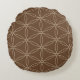 Coussin ronde avec grande fleur de vie motif. Ce design élégant aux couleurs beige et marron appartient à la géométrie sacrée. On croit que la fleur du motif de vie apporte guérison et harmonie. Chaque intersection de cercles forme l'étoile de David.