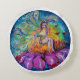 Fleur colorée et capricieuse assise sur une fleur rose fuchsia en or brillent.Peinture acrylique en blanc, bleu rose vert jaune, feuille dorée et argentée aux couleurs irisées. c) par Bulgan Lumini