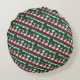 A funny dog choir on a Christmas themed round pillow or cushion. Use "Personalize this template" to change the "Bark! the herald angels sing!" pun and create a unique, customized Christmas accessory. Featuring six toy dog breeds singing carols, including a Dachshund, Yorkie, Bichon Frise, Chihuahua, a Pomeranian and a Pug. Each doggy choirboy is wearing traditional red and white robes and holding a hymn book and candle.