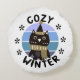 Une chouette chouette portant une écharpe d'hiver et les grands mots heureux hiver. Pour tous ceux qui aiment les vibes d'hiver et les animaux mignons.
