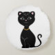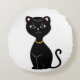 Joli chat noir intelligent de dessin animé sur oreiller rond blanc.