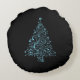 Joyeux Noël Arbre Étoiles Bleu Noir Métallure Coussin Rond Chic