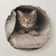 Bleu et noir, rond. Se glisse dernière le dos pour le soutenir. La qualité d'impression est excellente.