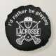 Lacrosse Design Round Pillow with customizable text and background color.