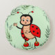 Jolie coccinelle heureuse et feuilles de plante verte sur un coussin rond. Idéal pour tout le monde. La coccinelle est un symbole universel de bonne fortune ! Super pour les enfants et les adultes !