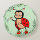 Coussins Ronds Ladybug Heureuse et Feuilles de Plante sur Fond Ve