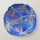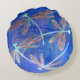 Bleu et noir, rond. Se glisse dernière le dos pour le soutenir. La qualité d'impression est excellente.