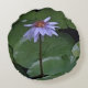 L'image de ce Coussin rond est une photo originale de MaeFlowers d'un nénuphar, une fleur qui fleurit au milieu des coussinets flottant sur l'eau. La fleur est d'une belle couleur bleu lavande, se détachant du vert foncé, des lilypads ronds.