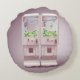 Bleu et noir, rond. Se glisse dernière le dos pour le soutenir. La qualité d'impression est excellente.