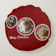Meowy Christmas Three Cats Photos Customize Round Pillow, for cat lovers and cat owners, make your own keepsake