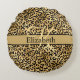 Coussin rond Empreinte de léopard noir et or monogramme et personnalisé. Ajoutez votre nom de famille initial et votre nom.