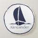 Coussins Ronds Nautical White Sailboat Navy blue Coastal Monogram