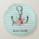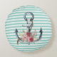 Coussins Ronds Nautique, Fleurs d'Ancres Mint Vert rayures