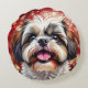 Adorable Chien chih Tzu chiot chien coussin de Noël avec arrière - plan neigeux rouge et blanc.