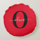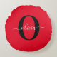 Coussins Ronds Nom de script de monogramme personnalisé Rouge Noi