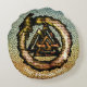 Le valou (valou de l'ancien Norse, "guerriers tués" et le noyer, "noeud") est un symbole composé de trois triangles enfermés. Il apparaît sur une variété d'objets provenant du dossier archéologique des peuples germaniques anciens. La noix de cou du nom est de l'époque moderne. Le terme utilisé pour le symbole pendant son emploi historique est inconnu. ~wiki Les chercheurs ont proposé une variété d'explications pour le symbole, l'associant parfois au dieu Odin, et il a été comparé au symbole à trois cornes trouvé sur la pierre Snoldelev du 9ème siècle, avec lequel il peut être relié.[1] La noix de caillou est utilisée sporadiquement dans la culture populaire moderne et est de nouveau associée au paganisme germanique par son renouveau moderne, Heathenry.La noix de caillou (prononcée "VAL-knoot") est l'un des symboles les plus discutés mais énigmatiques de tous les symboles qui apparaissent en lien avec la mythologie norse. Visuellement, il se compose de trois triangles interdépendants. Archéologiquement, il apparaît sur plusieurs pistes et des pierres commémoratives picturales qui datent de l'âge viking et se trouvent sur l'île suédoise de Gotland, ainsi que sur des tombes de l'enterrement du navire Oseberg en Norvège.[1] Son nom n’est mentionné dans aucune source d’époque; valknut est un mot composé norvégien moderne qui signifie "noeud de ceux qui sont tombés dans la bataille" et a été introduit par des Norvégiens qui ont vécu longtemps après l’âge viking.[2] ~http://norse-mythology.org/symbols/the-valknut/ Les ouroboros ou uroboros (/ˌjʊˈbɒ raks/) est un symbole ancien représentant un serpent ou un dragon mangeant sa propre queue. Evertemporary Life~ L'arrière - plan est de la Belcher Mosaic Glass Co Collection Belcher Mosaic Glass Co., une société de verre de New York, a présenté ses mosaïques de verre de pointe dans le catalogue de l'entreprise de 1886. Henry F. Belcher était un fabricant de verre pionnier, avec 22 brevets, quatre pour ses procédés innovants, qui selon lui "concentre la lumière et la jette dans la pièce avec une brillance particulière"