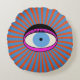 Un oeil bleu trippy sur un arrière - plan d'oranger/corail profond et d'éclat de soleil bleu.