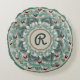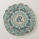 Personnalisez le Monogramme sur ce coussin d'accent rond avec un design original qui apporte la splendeur hivernale du pays du nord dans votre maison, avec des oiseaux rouges écarlates volant au milieu d'un éventail gracieux de longues branches de pin à aiguille, un florilège de délicats flocons de neige en dentelle, des cloches dorées joliment ornées d'art populaire coloré.